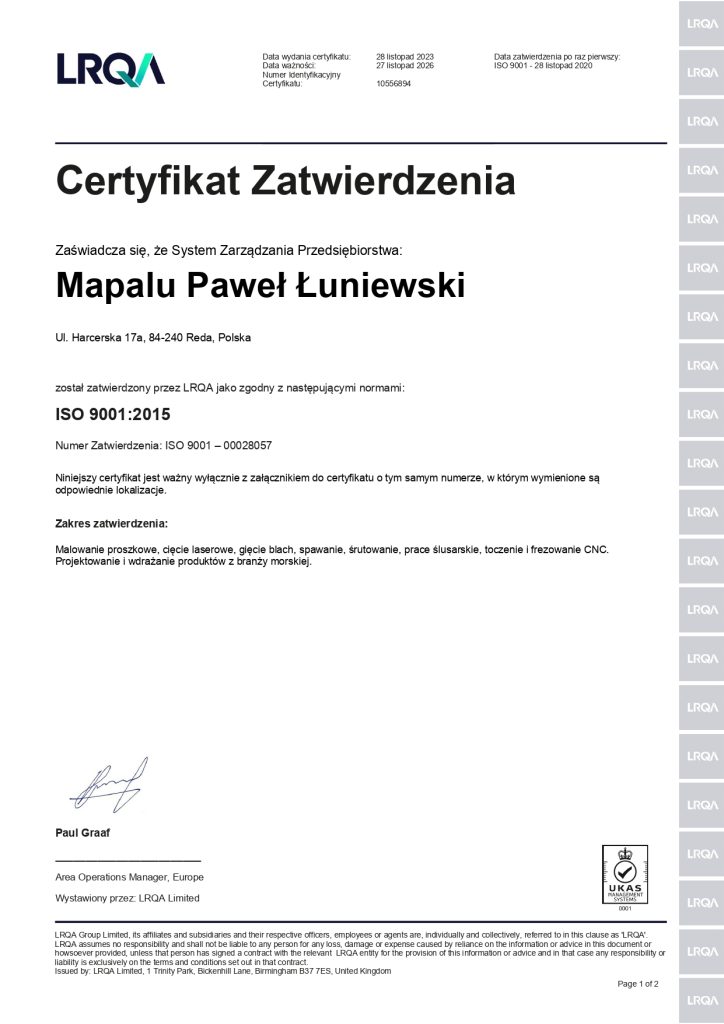 Firma MAPALU istnieje na rynku od 2013 roku. Historia naszej firmy od samego początku związana była z branżą okrętową. W roku 2018 wprowadziliśmy w naszej firmie dział Badań i Rozwoju. Intensywna praca doświadczonych inżynierów w tym dziale zaowocowała dwoma zgłoszeniami patentowymi innowacyjnymi w skali międzynarodowej. Rozpoczynamy wdrażanie tych patentów przy współpracy z Politechniką Gdańską, polskimi stoczniami oraz trójmiejskimi biurami projektowymi.